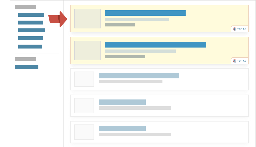 Top Ad At the top of every ad listing page, there are up to 2 spots reserved for Top Ads. By adding a Top Ad promotion to your ad, you earn the chance for your ad to be displayed in one of these Top Ad spots - which can get you up to 10 times or more views!